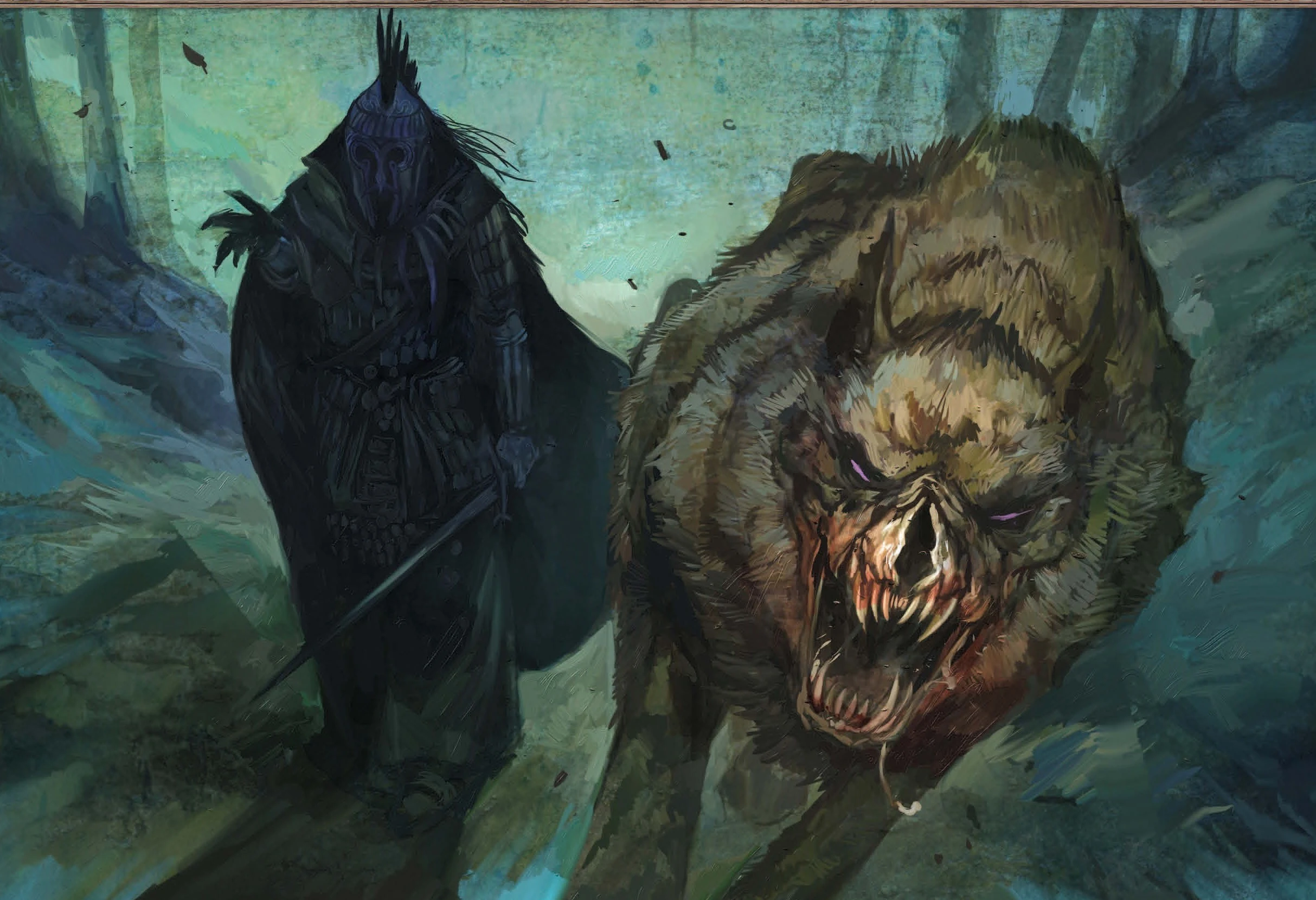 Nameless and with no will of their own, the Castellans of Dol Guldur are but one facet of that cursed tower’s sleepless malice. Formless, save for the armour that binds them, they stalk the paths about Dol Guldur, slaying those they find. Each fell to Sauron’s service in a different way; some sought to learn from him as an apprentice does from a master, others are the eternal remnants of one who has died in agony in Sauron’s dungeons. However they came into the Dark Lord’s service, they are all now bound to his curse and serve him, and his Úlairi, absolutely.