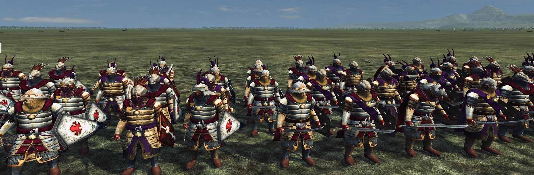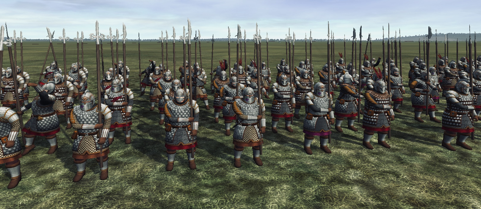 | Regents Thornstaffers | The Vintner Court was originally founded by land-owning merchants, men who chiefly grew and then sold wine - hence the name, though the institution of today is a vastly more complex beast than it was at its inception. Dorwinions armies have never been made up of professional, full-time soldiers, but were ever an amalgam of the forces of the separate people making up the realm itself. The various councilors would debate and argue, some would agree to send a portion of their men, some wouldn’t, and eventually an armed force would materialize. A fine system, for a regional power of little import, interested mainly in self defense and driven by the inherent need of all men for the riches of others when on the offense. No more. With the final city conquered, the Sea of Rhun is now the Sea of Vines, encircled by purple tendrils reaching all the the way from Helcârin to Mistrand. With such power and wealth at their back and call, the position of Regent has expanded substantially in authority. Now, by Regents decree, the courts coffers pay for the equipment and training of men, drawn from all the cities and villages that sit on the coast of the sea, men who are under arms all year round, and ready to fight whenever called upon. Advisors from other realms have been paid to help organize this reform. This new force is split into three branches, of infantry, archers, and cavalry, inspired by their old rhunic adversary. This step marks Dorwinions evolution into a polity truly able to effectively project its power outward, and both friend and foe should be wary of shrewd merchants with such a force at their command. These warriors bear staff weapons, to be used to stab and slash, and they wield them with the skill and confidence only long months of continuous drill instill in a man. Their armor is well made, with good iron, and crafted by Council-sponsored smiths, and whilst the initial Reform sees these soldiers wear gambeson beneath their cuirasses, chainmail will replace it in time. The Thornstaffers are intended as the vanguard of this new force, presenting a wall of points towards the enemy, grinding them down in a constant forward march. | ![]() |