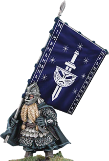 Like their kin in the ranks of the Scouts, these dwarves wield crossbows in battle against the enemy. However, unlike the hastily made wooden crossbows the Scouts wield, these warriors have the privilege of carrying crossbows reinforced with metal that allows them to fire bolts with greater strength than the Scouts. They are also more skilled as many of the warriors in these ranks have training with the use of the crossbows, unlike the levy of Scouts who are taught to use the weapon when they are recruited. Their blue-coloured clothes and garments clearly show from which mountain range they come and where their allegiance lies.