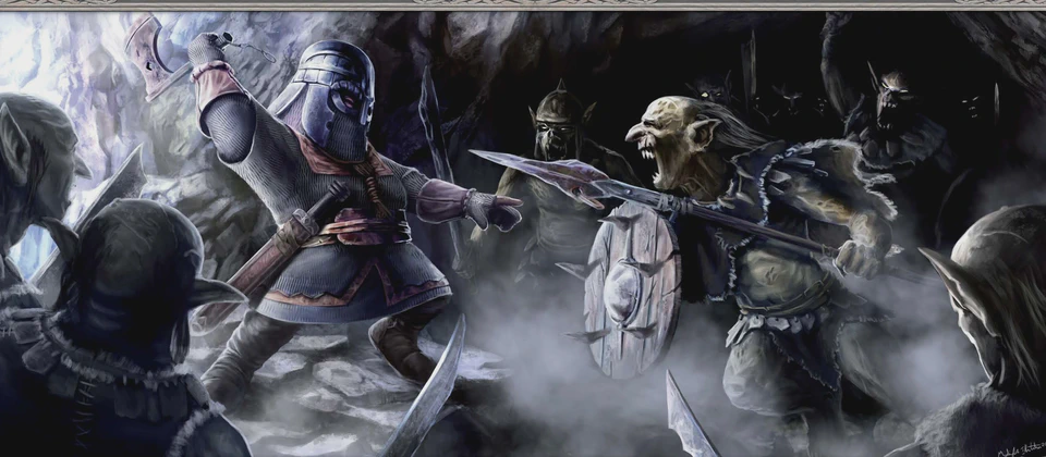 “But a small dark figure that none had observed sprang out of the shadows and gave a hoarse shout: Baruk Khazâd! Khazâd ai-mênu! An axe swung and swept back. Two Orcs fell headless. The rest fled.” - Dwarven battle cry