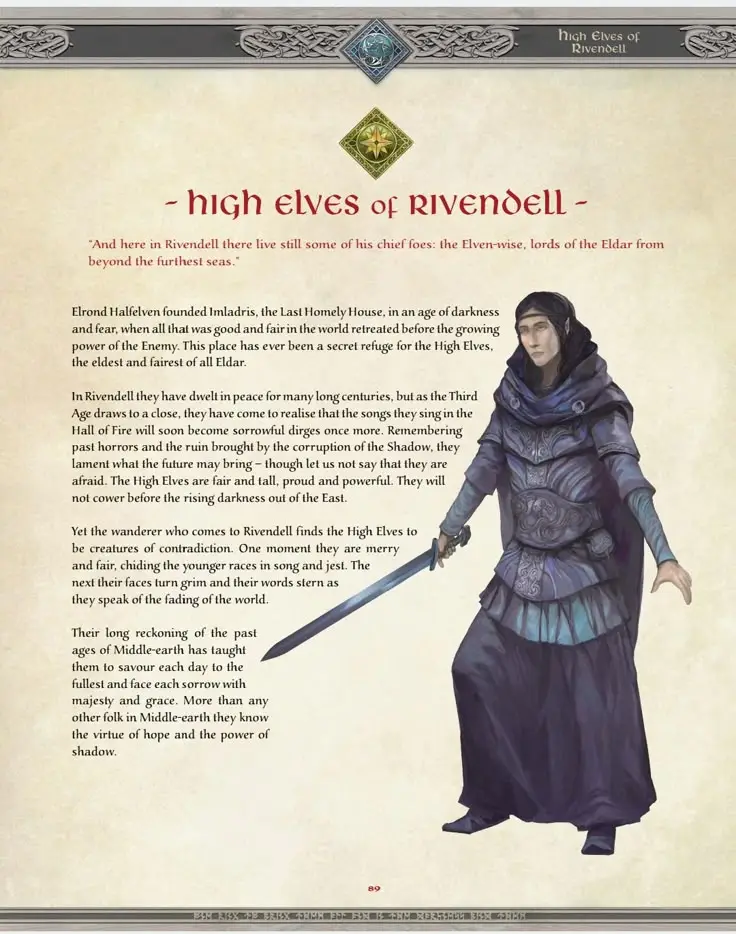 “In all the days of the Third Age, after the fall of Gil-galad, Master Elrond abode in Imladris, and he gathered there many Elves, and other folk of wisdom and power from among all the kindred of Middle-earth, and he preserved through many lives of Men the memory of all that had been fair; and the house of Elrond was a refuge for the weary and the oppressed, and a treasury of good counsel and wise lore.” - Nature of Imladris