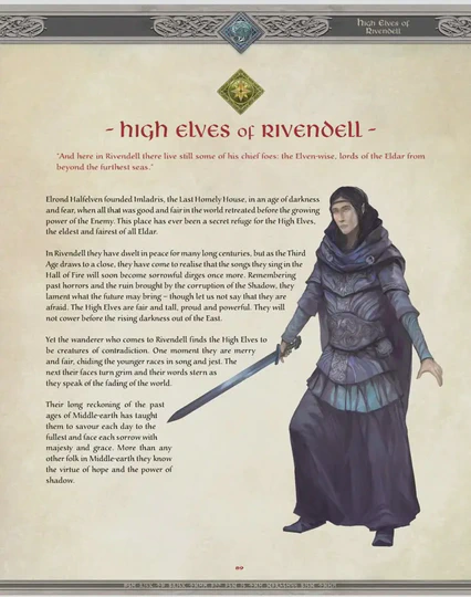 Elrond Half-elven has been always known as a statesman, a healer and a loremaster. Yet still, as an elf who has experienced all Three Ages, he is peerless in battle as well. His ability and presence has attracted the best of the elves still on Middle-Earth, either seeking protection from the Shadow or seeking to serve Elrond on his eternal vigil against it. With bow and blade, they will defend Elrond and fight with him, for even an elf cannot stand on its own against the Enemy and his minions. As a result, they form a formidable force on the battlefield, in spite of their small numbers.