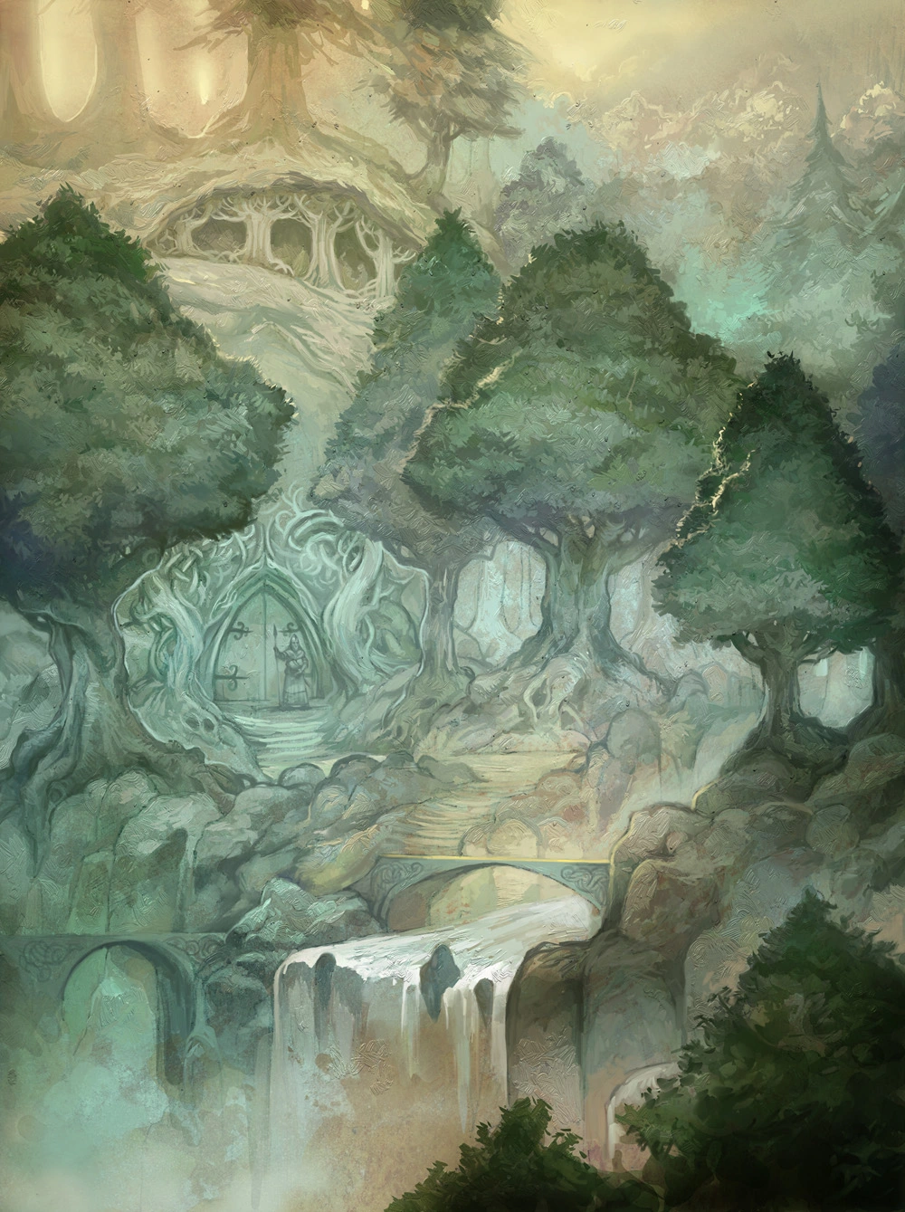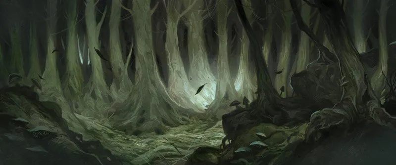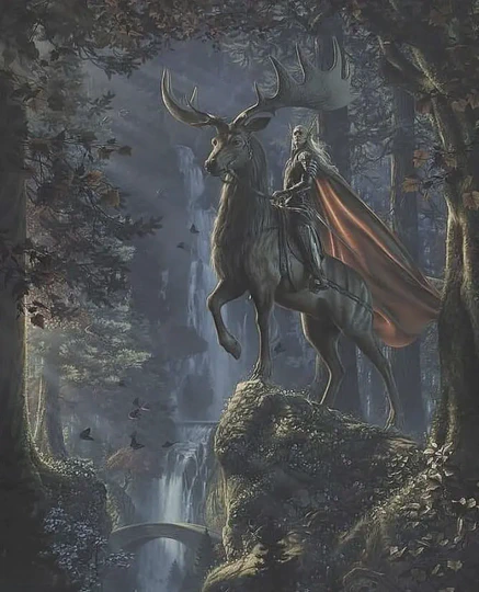 “Now of old the name of that forest was Greenwood the Great, and its wide halls and aisles were the haunt of many beasts and of birds of bright song; and there was the realm of King Thranduil under the oak and the beech. But after many years, when well nigh a third of that age of the world had passed, a darkness crept slowly through the wood from the southward, and fear walked there in shadowy glades; fell beasts came hunting, and cruel and evil creatures laid there their snares. Then the name of the forest was changed and Mirkwood it was called, for the nightshade lay deep there, and few dared to pass through, save only in the north where Thranduil’s people still held the evil at bay.” - Fortunes of Mirkwood and strength of the Elves